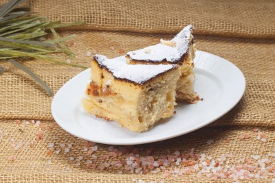 TELEMEA DE VACA (LAPTE DE VACA , sare, culturi lactice, cheag), BRANZĂ GRASA PROASPATA DE VACI ( lapte de vacă semidegresat pasteurizat 1.5% grăsime, culturi lactice selecţionate), SMANTANA (LAPTE DE VACA pasteurizat, culturi lactice selectionate), zahar, FOI DE PLACINTA (FAINA ALBA DE GRAU, apa, amidon de porumb, sare iodata), IAURT GRAS (LAPTE DE VACA PASTEURIZAT, culturi lactice selectionate), STAFIDE, OUA, ulei floarea soarelui, esenta de vanilie33 RON / gr