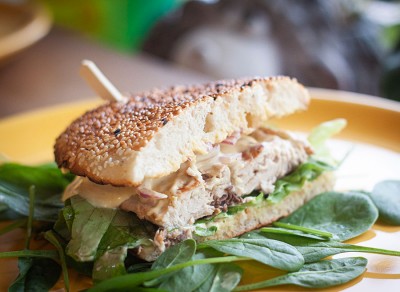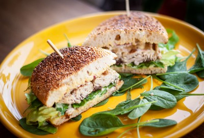 FILE DE MACROU 43%, CHIFLĂ (FAINĂ DE GRÂU, apă, SEMINȚE DE SUSAN (5%), ulei de rapiță, aluat (SECARĂ), făină de GRÂU pregelatinizată, drojdie, sare iodată, negrilică (0,3%) produs decongelat), SOS DE MUȘTAR (MUȘTAR DULCE (apă, BOABE DE MUȘTAR (15%), zahăr, oțet din alcool, sare, colorant (beta caroten), agent de îngroșare (gumă de xantan) 62%), SOS DE MAIONEZĂ (ulei rafinat de rapiță (53%), apă (30%), zahăr, oțet, MUȘTAR (apă, oțet, BOABE DE MUȘTAR, zahăr, sare), amidonuri modificate, sare, acidifiant (acid lactic), praf de OU integral (0,3%), agent de îngroșare (gumă de xantan), conservanți (sorbat de potasiu, benzoat de sodiu), colorant (beta-caroten), antioxidant (calciu-disodic-EDTA)), lămâie, piper alb), ceapă roșie, salată verde, sare76 RON / gr